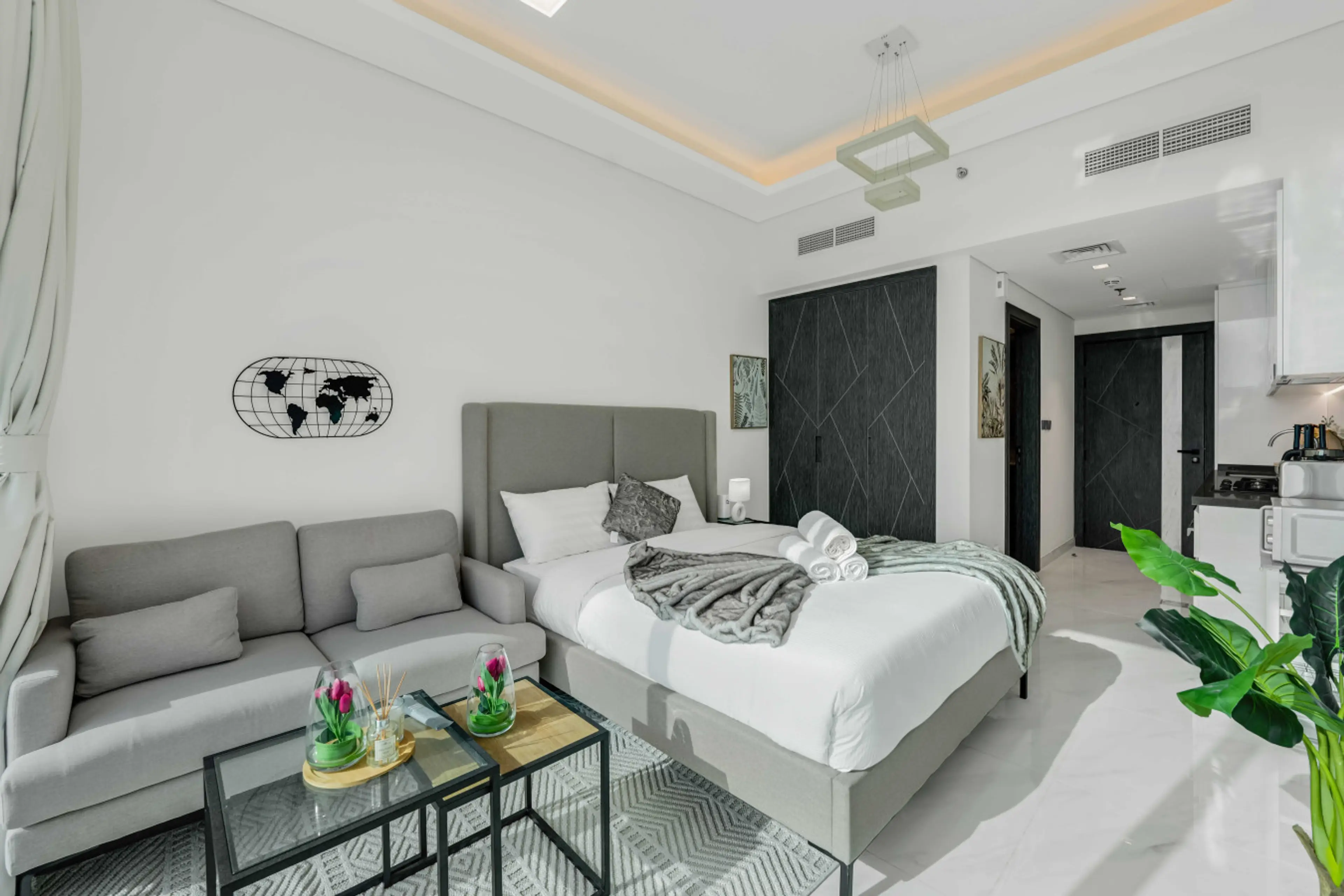 Samana Park Views is located in Arjan, a growing residential area close to Dubai Miracle Garden and Dubai Butterfly Garden. Nearby you’ll find supermarkets, pharmacies, cafés and other daily services only a short drive away, so it works well for both short stays and longer visits in Dubai. 🚗✨ Insi...
